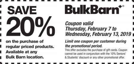 Click here to print Bulk Barn’s 20% off coupon.