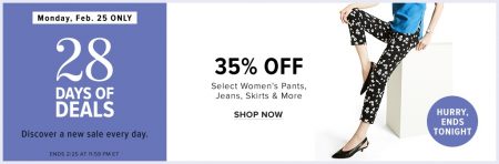 - 35% Off Select Women’s Pants, Jeans, Skirts & More
