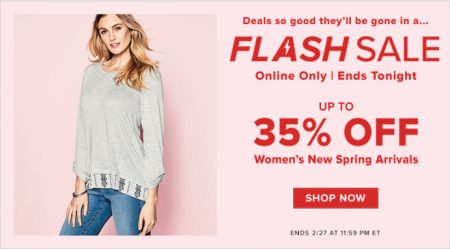 - Up to 35% Off Women’s New Spring Arrivals (Feb 27)