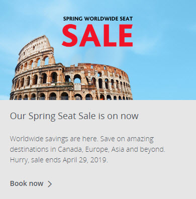 Air Canada: Spring Worldwide Seat Sale (Book by Apr 29)