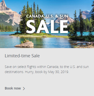 Planning a trip soon? Now is the time save on select flights within Canada, to the U.S. and sun destinations.