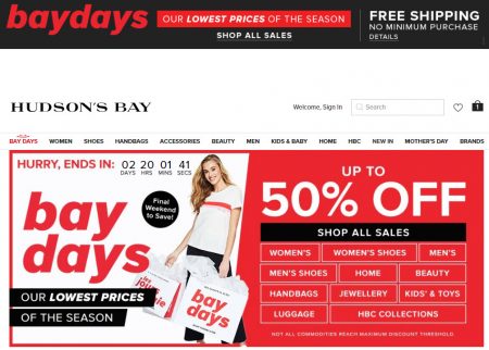 Hudson’s Bay: Final Days of Bay Days + Free Shipping Friday (May 3)