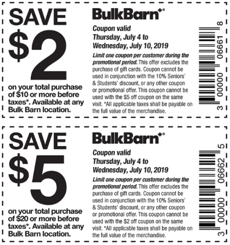 The coupons is valid at all Bulk Barn locations from Thursday, July 4 to Wednesday, July 10, 2019. There’s a limit of one coupon per customer during the promotional period.