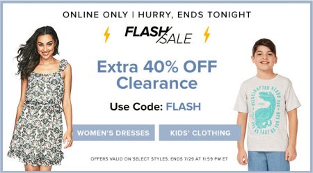 - Extra 40% Off Clearance Women’s Dresses & Kids’s Clothing with Code FLASH at checkout