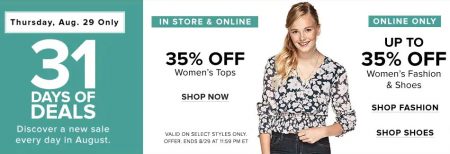 - Up to 35% Off Women’s Fashion & Shoes (Online Only)