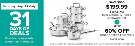 - Sale $199.99 for Zwilling Twin Classic 12-Piece Cookware Set (Save $500, 71% Off)