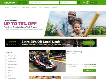 Save up to 75% off Activities, Dining, Beauty & Spa, Massages, Doorbusters, Apparel, More! Prices as marked. No promo code requires. Valid on select deals and in select cities.
