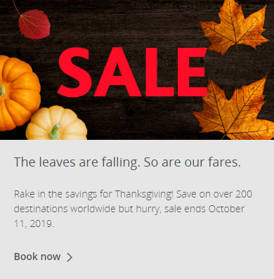Air Canada: Thanksgiving Sale (Book by Oct 11)