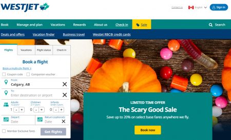 WestJet: Scary Good Deal - Up to 20% Off Discount Code (Book by Nov 1)