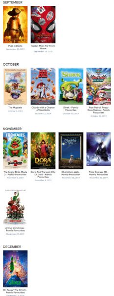 Visit a participating Cineplex Movie Theatre every Saturday morning at 11am and watch a family favourite film each week for only $2.99 per ticket!