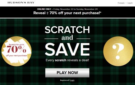 Hudson’s Bay is having an Online Scratch & Save Event.