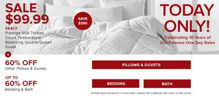 TheBay.com: Today Only – Sale $99.99 for Sealy Temperature Balancing Double/Queen Duvet, Save $260 (Nov 30)