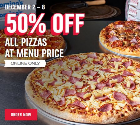 Domino’s Pizza: 50% Off All Pizzas at Menu Price (Dec 2-8)