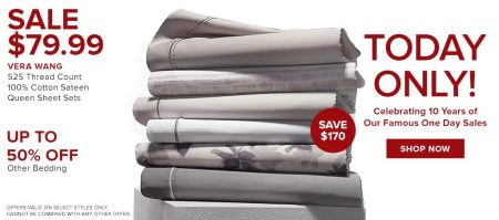 TheBay.com: Today Only – Sale $79.99 for Vera Wang Sheet Sets, Up to 50% Off Other Bedding (Dec 5)