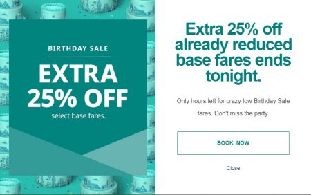 WestJet: Extra 25% Off Birthday Sale (Book by Mar 1)