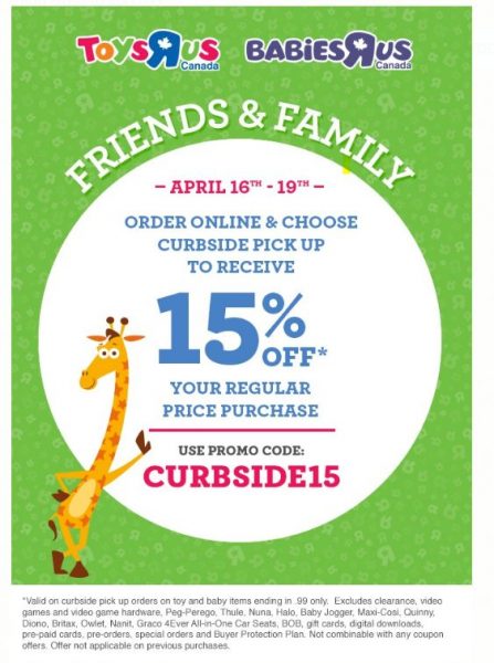 Toys R Us: Friends & Family - 15% Off Regular Priced Purchase Promotional Code (Apr 16-19)