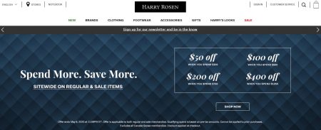 Harry Rosen: Spend More, Save More - Up to $400 Off + Free Shipping on All Orders (May 1-6)