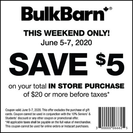 Bulk Barn: $5 Off $20 Purchase Coupon (June 5-7)