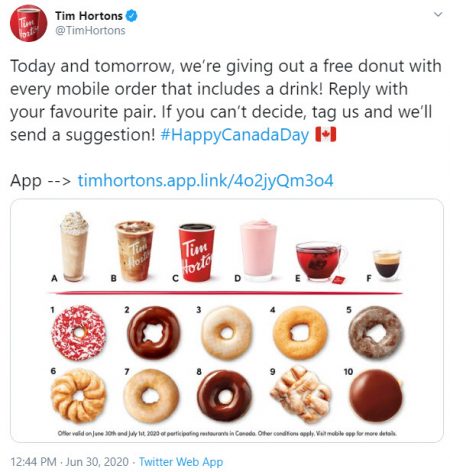 Click here to visit Tim Hortons’ Twitter page for more details.