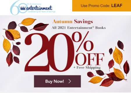 For a limited time, Entertainment.com is offering 20% off all 2021 Coupon Books + Free Shipping when you enter Promo Code LEAF at checkout.