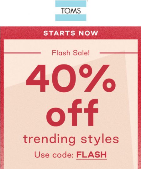 TOMS.ca: Flash Sale - 40% Off Fall Favorites Promo Code (Sept 12-13)