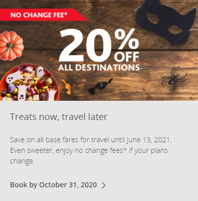 Save on all base fares to all destinations for travel until June 13, 2021. Even sweeter, enjoy no change fees if your plans change.