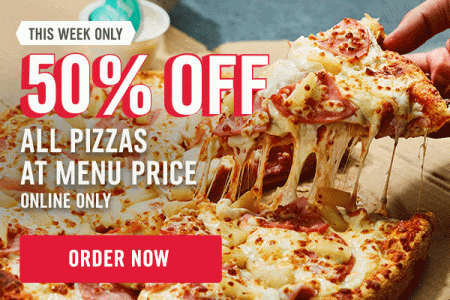 Domino’s Pizza is offering 50% off all pizzas at menu price when you order online!