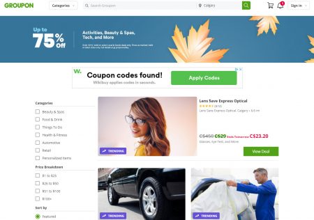 Save up to 75% off Activities, Dining, Beauty & Spa, Massages, Doorbusters, Apparel, More! Prices as marked. No promo code requires. Valid on select deals and in select cities.
