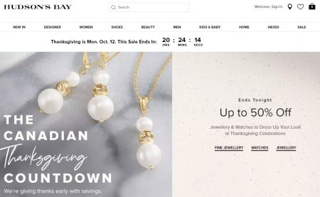 Hudson’s Bay is giving thanks early with savings.