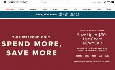 Hudson’s Bay: Spend More, Save More - Up to $50 Off Promo Code (Jan 1-3)