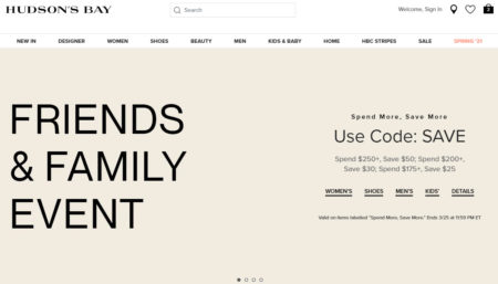 Hudson’s Bay is having a Friends & Family Event - Spend More, Save More.
