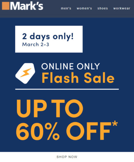 Mark’s: Flash Sale - Up to 60% Off (Mar 2-3)