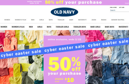 Old Navy: Cyber Easter Sale - Save 50% Off Online (Mar 20-22)