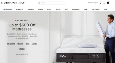 Hudson’s Bay: One Day Sale - Up to $500 Off Mattresses, Up to 60% Off Bedding & Bath (June 17)