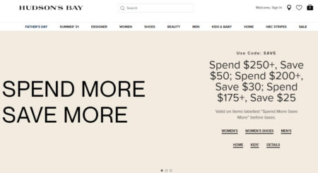 Hudson’s Bay is having a Spend More, Save More Sale.