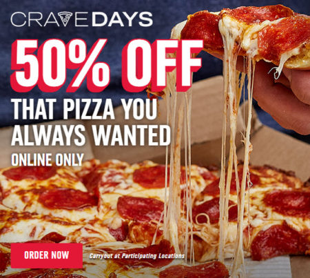 Domino’s Pizza is offering 50% off all pizzas at menu price when you order online!