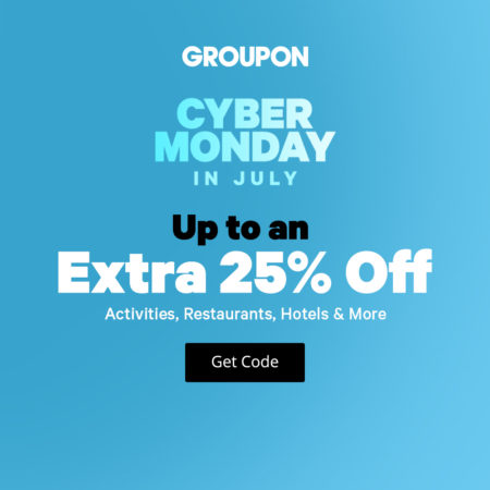 Groupon.com is having a Cyber Monday in July Sale and offering up to an extra 25% off promo code!