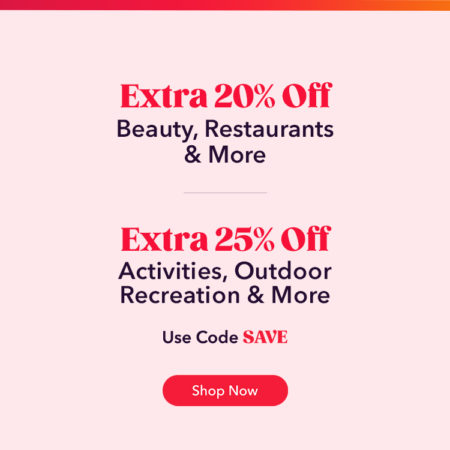Save an incredible extra 25% off Family Activities, Outdoor Recreation & More, or an extra 20% off Activities, Restaurants, Beauty & More when you enter the promo code SAVE at checkout! I’ve tested the code and can verify that it works.