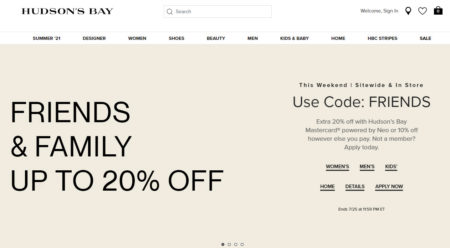 Hudson’s Bay: Friends & Family - Up to 20% Off Promo Code (July 23-25)