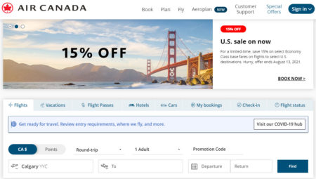 Air Canada: 15% Off Flights to the US Promotional Code (Book by Aug 13)
