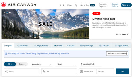 Click here to visit AirCanada.com to book a flight now or for more details