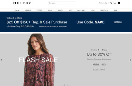 Hudson’s Bay is having a 1-day only Flash Sale today (Sunday, August 22, 2021).