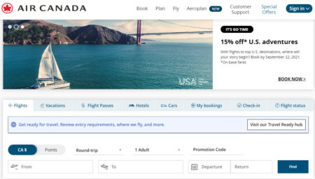 Air Canada: 15% Off Flights to the US Promotional Code (Book by Sept 22)