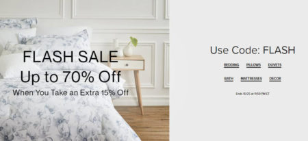 - Up to 70% Off Bedding & Bath When You Take an Extra 15% Off with Code FLASH