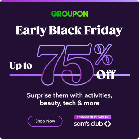 Groupon.com is having an Early Black Friday up to 75% off sale.