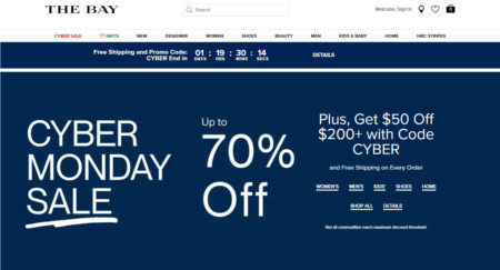 Hudson’s Bay is having a Cyber Monday Sale.