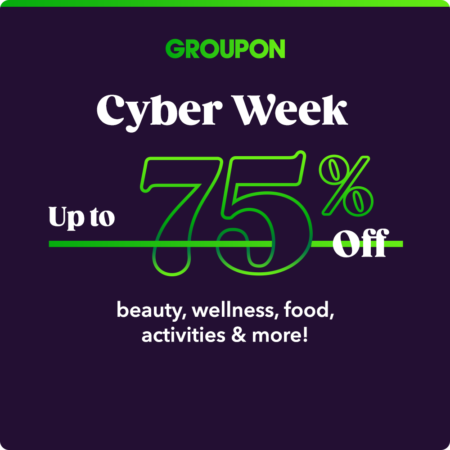 Groupon.com is having a Cyber Week up to 75% off sale!