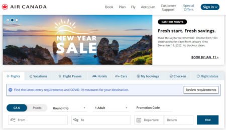 Click here to visit AirCanada.com to book a flight now or for more detail