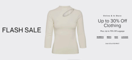 Hudson’s Bay: Flash Sale – Up to 30% Off Clothing, Up to 75% Off Luggage (Jan 25)