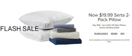 Hudson’s Bay: Flash Sale – $19.99 for Serta 2-Pack Pillow, Up to 60% Off Pillows, Duvets, Bedding & Bath (Feb 24)